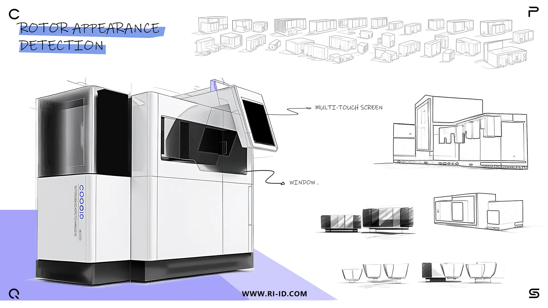 这台外形线条简洁、配色鲜明、边框四周倒圆角并拥有大视窗的数控转子外观检测机在外观设计上充分展现了现代工业设计的精髓,既具有专业的功能性,又注重了用户的操作体验。