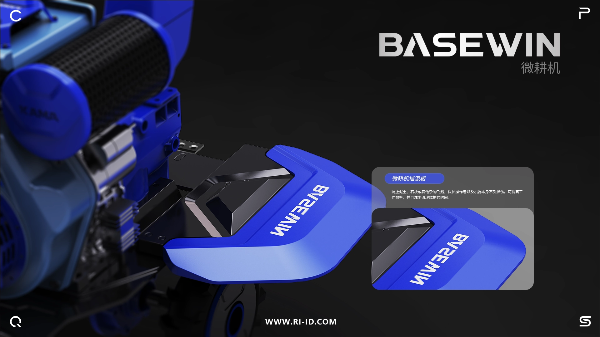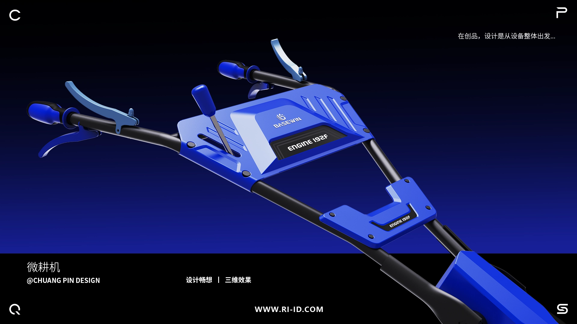 通过对目标用户群体的研究发现,用户不仅关心微耕机的工作性能,还越来越重视产品的外观和使用便捷性。我们在设计过程中引入了人体工程学原理,确保操控面板布局合理,操作按钮触手可及。考虑到户外使用的特殊性,选择了耐磨损、抗腐蚀的材料,并采用宝蓝与亚光黑的配色方案,提升了产品的辨识度,又使其更显专业质感。