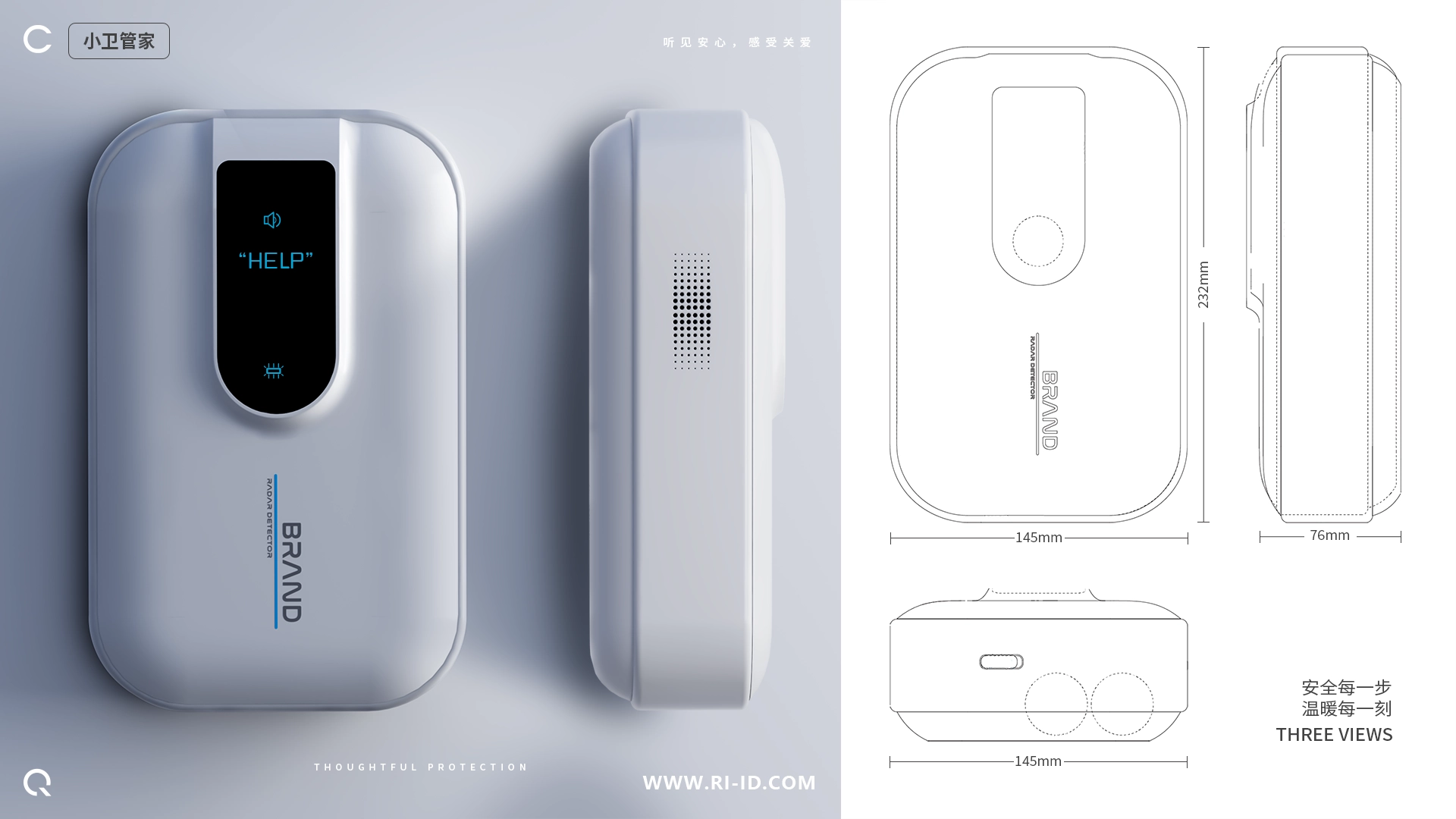 小卫管家的设计融合了极简美学与实用性,白色机身彰显现代家居风格。通过深入研究用户需求,我们成功打造了一款既美观又易用的家用医疗急救呼叫产品,为家庭安全提供了有力保障。