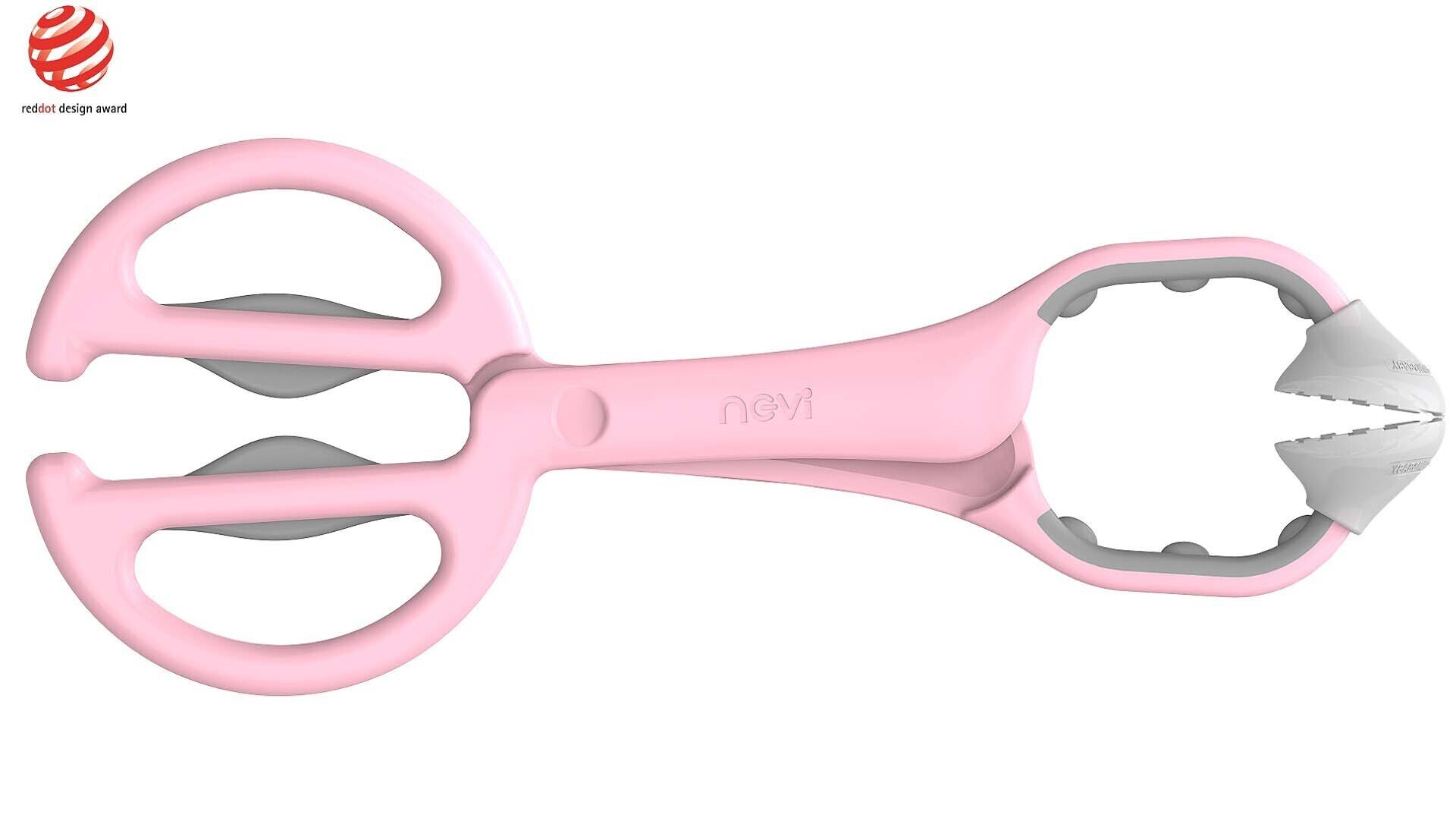 荣获红点奖的奶瓶夹设计,巧妙的使用两个硅胶头增加了架子夹持奶瓶时的摩擦力。