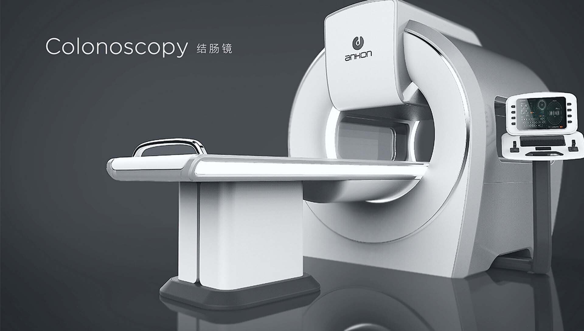 这台设备不是一般意义上的结肠镜,而是结合胶囊内窥镜使用的检测设备,外形有点像CT机,实际是控制胶囊机器人在肠道内的运动,通过胶囊内的摄像头进行检测。圆润柔和的外观,力求减缓受检者不安情绪,同时又不失科技感。